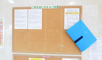 - アンケート調査で頂いたご意見については検討を行い、回答を総合受付前の掲示板へ掲示しております
