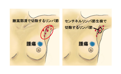 腋窩リンパ節の郭清(切除)は、従来、乳がん手術において標準的な処置とされてきましたが、リンパ節に転移のない患者様にとっては不要な処置となる場合もあり、腕のむくみなどの後遺症が課題とされてきました。
