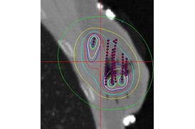 しかし、当院の最新リニアックは、照射位置を病巣のみにターゲットを絞ることができる、3Dリニアックを導入しており、放射線治療専門医が常駐しております。この3Dリニアックでは、多方向からの照射を行ない、その重複する位置(病巣)に放射線が集中する画期的な装置で、誤差は約2mmとも言われています。