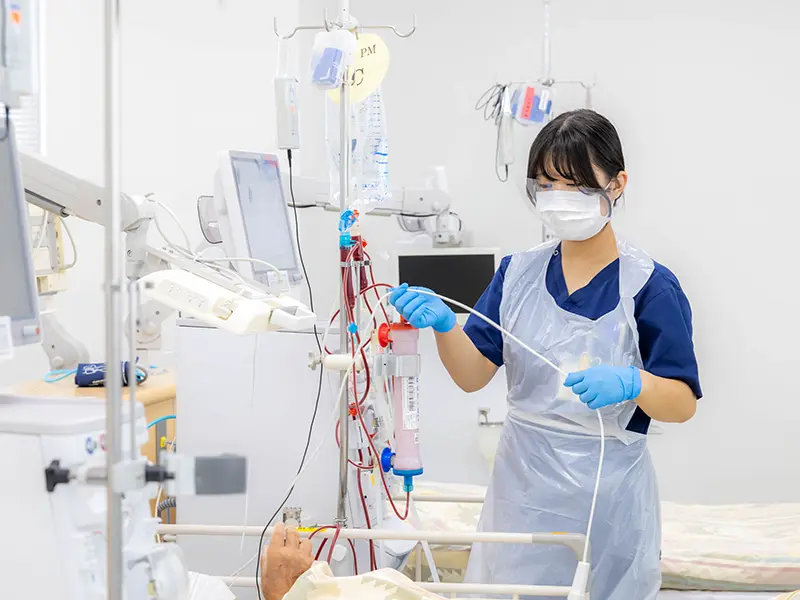 集中治療室(ICU)では、持続的腎代替療法(CRRT)も実施しており、循環動態が不安定な重症患者様に対しても、安全かつ適切な治療が提供できるよう取り組んでいます。