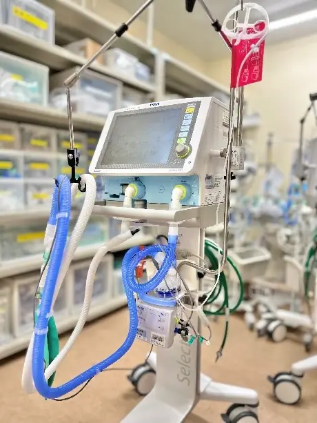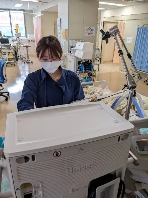 人工呼吸器が設定通りに適切に作動しているかを確認するため、1日に複数回の点検を実施し、安全管理と保守点検に努めています。