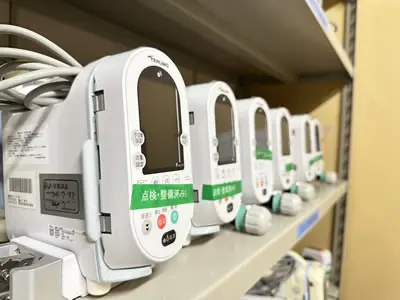 また、院内の各部署に常時設置されている医療機器(除細動器、AED、セントラルモニター)の保守点検業務も行っています。
