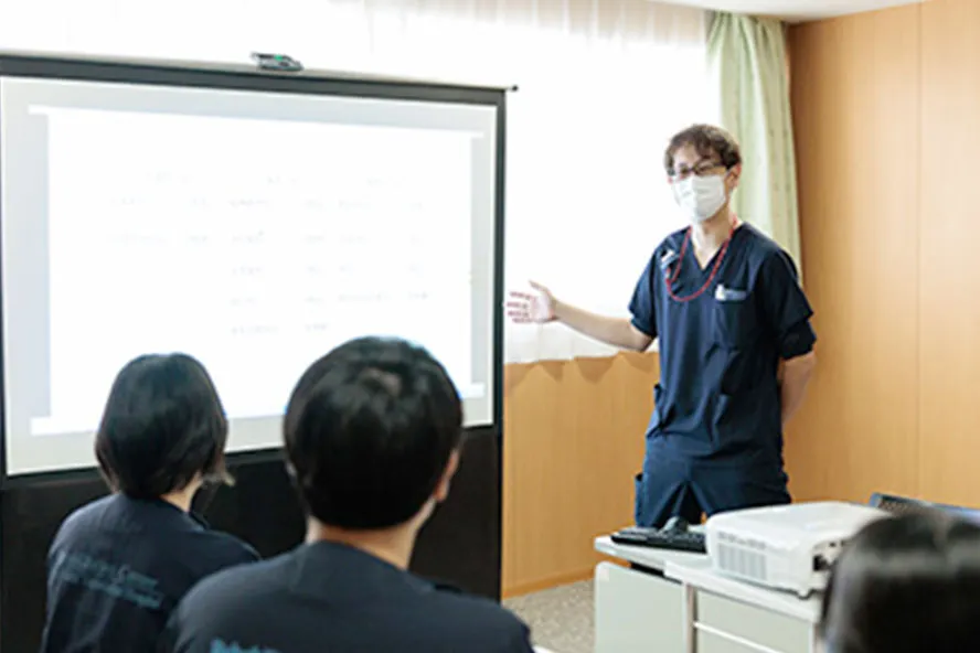 当院で対応する主な疾患に関する基本的な知識や技術を学ぶ機会として、科内研修会を定期的に実施しています。自己研鑽の一助となるよう、自由参加形式で開催しています。
