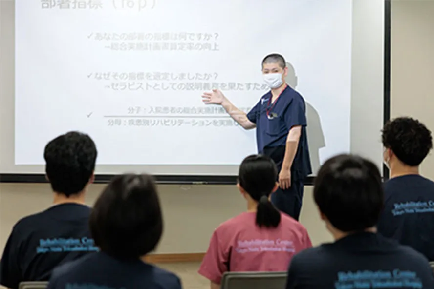 当院のリハビリテーション科では、職員教育に力を入れて取り組んでいます。入職時オリエンテーションをはじめ、院内必須研修や科内勉強会を通して、着実なスキル向上をサポートします。