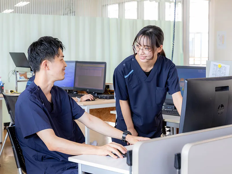 業務開始に必要な知識を身につけるためのオリエンテーションを行い、安心して患者対応に取り組めるよう支援しています。医療安全や感染対策、介助方法、電子カルテの操作方法など、基本的な知識と技術を習得するプログラムを用意しています。