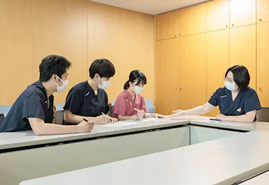 入職後1年間は、プリセプターの指導のもと、臨床業務に取り組みます。患者担当に向けた準備(評価や治療プランの考案)から、リハビリテーション介入、カルテ記録、患者情報のまとめと振り返りまで、プリセプターが実務を共にしながら丁寧にサポートを行います。